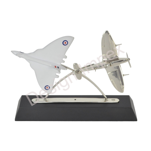 Tafelgerei Pronkstuk 2 Vliegtuigmodellen Op Houten Basis Elegant Vliegtuig Model Bewegende Gevechtsvliegtuigen Perfect Voor Souvenir Cadeau