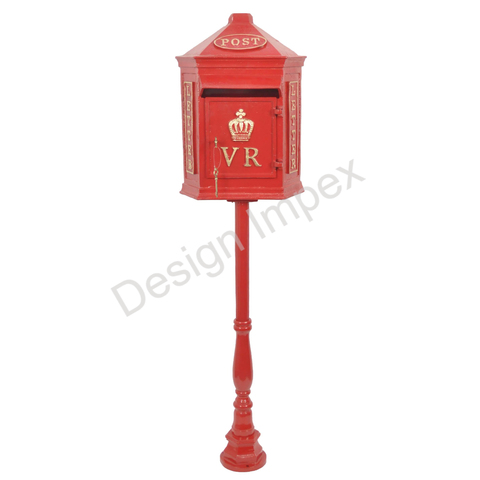 Tuindisplay Postbus Stand Vr Luxe Gietijzer Rood Gecoat Afgewerkt Nieuwste Brievenbus Decoratieve Brievenbus Met Pilaarstandaard